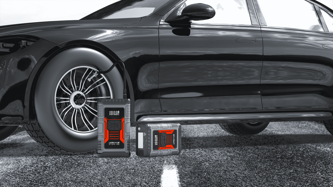 此外,它结合了汽车应急启动电源和充气泵的功能。它就像是汽车的“移动电源 气泵”。如果车子电瓶没电了,它可以帮你临时启动车子;如果你的车轮胎没气了,它还能帮你充气,检测胎压补足胎压。